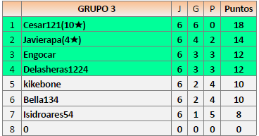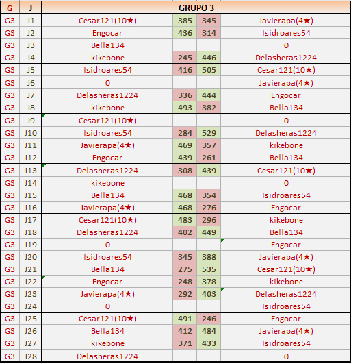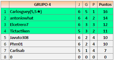 Deja un comentarioEn está página se irán publicando los resultados de las diferentes partidas, siendo ambos jugadores responsables de subirlos o de comprobar que ya hayan sido publicados insertando un COMENTARIO en la parte inferior de la pantalla (opción «Deja tu comentario»), indicando el nombre de los dos jugadores y los puntos obtenidos en la partida.