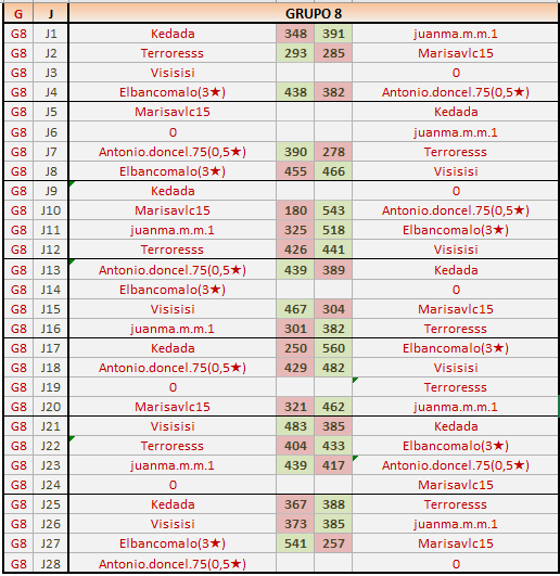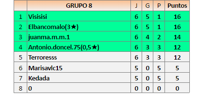 Deja un comentarioEn está página se irán publicando los resultados de las diferentes partidas, siendo ambos jugadores responsables de subirlos o de comprobar que ya hayan sido publicados insertando un COMENTARIO en la parte inferior de la pantalla (opción «Deja tu comentario»), indicando el nombre de los dos jugadores y los puntos obtenidos en la partida.