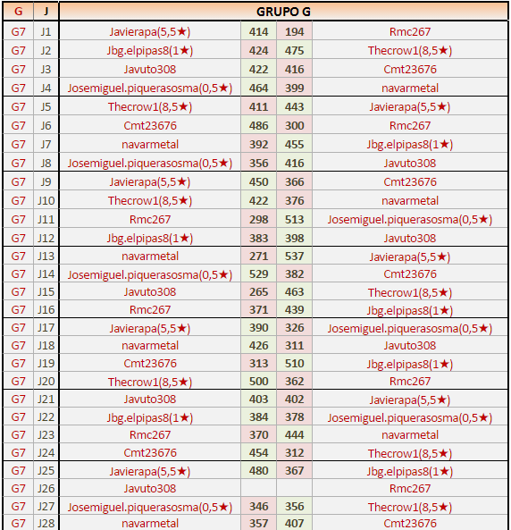 Deja un comentarioES OBLIGATORIO RESPETAR EL ORDEN LOCAL (IZQ) Y VISITANTE (DER), ASÍ COMO INDICAR EL GRUPO CORRESPONDIENTE Y LOS NÚMEROS DE JORNADA.