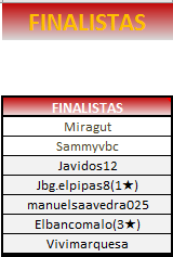 Si Javidos12 está excluido de la clasificación se produce un triple empate entre los otros 3 jugadores y aplicando las reglas para desempates de los Torneos individuales resulta que cada uno de los 3 jugadores ha ganado 2 partidas y ha perdido las otras 2 en los enfrentamientos entre ellos.