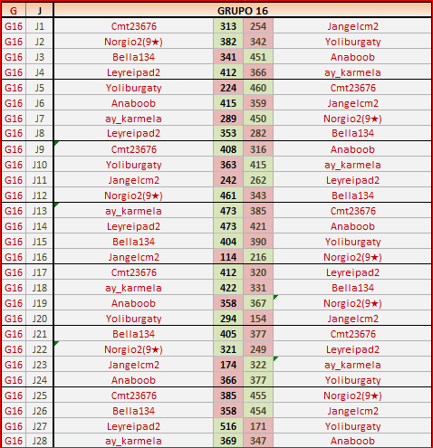 1En está página se irán publicando los resultados de las diferentes partidas, siendo ambos jugadores responsables de subirlos o de comprobar que ya hayan sido publicados insertando un COMENTARIO en la parte inferior de la pantalla (opción “Deja tu comentario”), indicando el nombre de los dos jugadores y los puntos obtenidos en la partida.