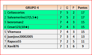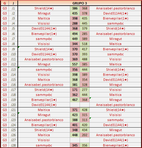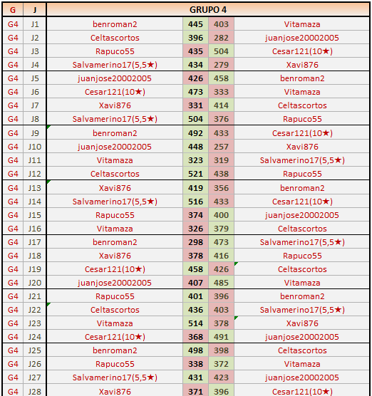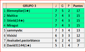 Deja un comentarioEn está página se irán publicando los resultados de las diferentes partidas, siendo ambos jugadores responsables de subirlos o de comprobar que ya hayan sido publicados insertando un COMENTARIO en la parte inferior de la pantalla (opción “Deja tu comentario”), indicando el nombre de los dos jugadores y los puntos obtenidos en la partida.