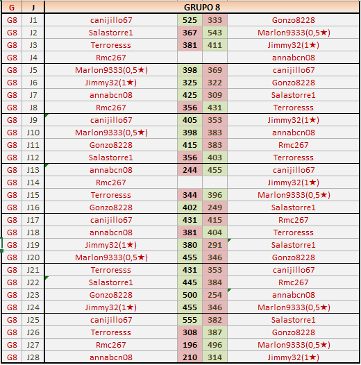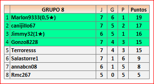 Deja un comentarioEn está página se irán publicando los resultados de las diferentes partidas, siendo ambos jugadores responsables de subirlos o de comprobar que ya hayan sido publicados insertando un COMENTARIO en la parte inferior de la pantalla (opción “Deja tu comentario”), indicando el nombre de los dos jugadores y los puntos obtenidos en la partida.