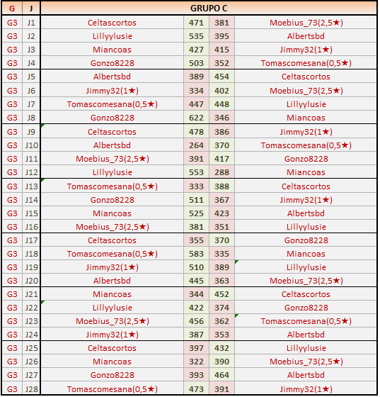 Deja un comentarioES OBLIGATORIO RESPETAR EL ORDEN LOCAL (IZQ) Y VISITANTE (DER), ASÍ COMO INDICAR EL GRUPO CORRESPONDIENTE Y LOS NÚMEROS DE JORNADA.