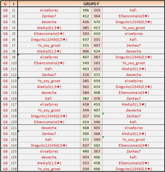 Deja un comentarioES OBLIGATORIO RESPETAR EL ORDEN LOCAL (IZQ) Y VISITANTE (DER), ASÍ COMO INDICAR EL GRUPO CORRESPONDIENTE Y LOS NÚMEROS DE JORNADA.