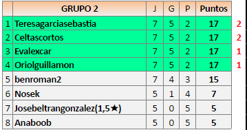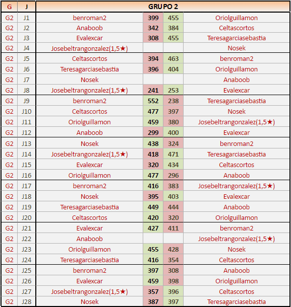 2En está página se irán publicando los resultados de las diferentes partidas, siendo ambos jugadores responsables de subirlos o de comprobar que ya hayan sido publicados insertando un COMENTARIO en la parte inferior de la pantalla (opción “Deja tu comentario”), indicando el nombre de los dos jugadores y los puntos obtenidos en la partida.