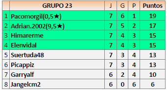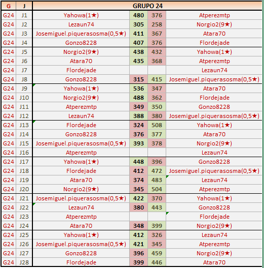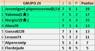 En está página se irán publicando los resultados de las diferentes partidas, siendo ambos jugadores responsables de subirlos o de comprobar que ya hayan sido publicados insertando un COMENTARIO en la parte inferior de la pantalla (opción “Deja tu comentario”), indicando el nombre de los dos jugadores y los puntos obtenidos en la partida.