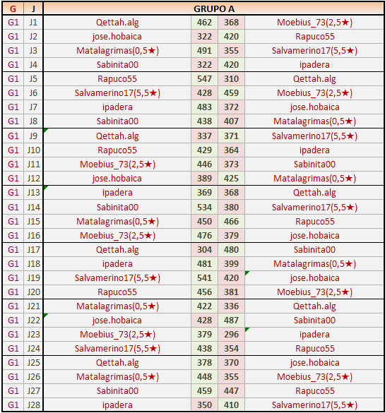 J1: jugador local (406) – Jugador visitante (447)