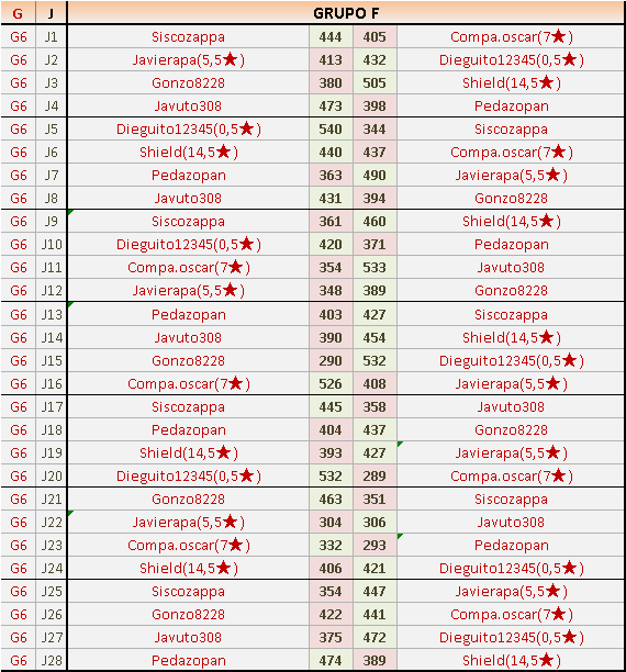 Deja un comentarioES OBLIGATORIO RESPETAR EL ORDEN LOCAL (IZQ) Y VISITANTE (DER), ASÍ COMO INDICAR EL GRUPO CORRESPONDIENTE Y LOS NÚMEROS DE JORNADA.