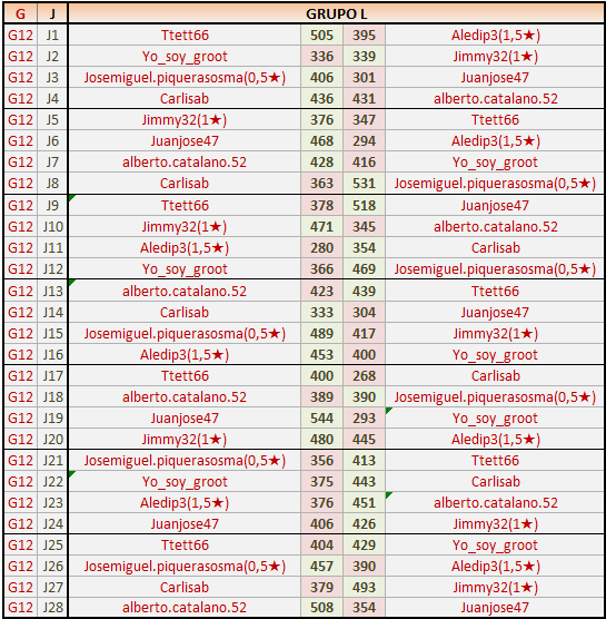 Deja un comentarioES OBLIGATORIO RESPETAR EL ORDEN LOCAL (IZQ) Y VISITANTE (DER), ASÍ COMO INDICAR EL GRUPO CORRESPONDIENTE Y LOS NÚMEROS DE JORNADA.