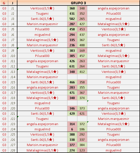 3En está página se irán publicando los resultados de las diferentes partidas, siendo ambos jugadores responsables de subirlos o de comprobar que ya hayan sido publicados insertando un COMENTARIO en la parte inferior de la pantalla (opción “Deja tu comentario”), indicando el nombre de los dos jugadores y los puntos obtenidos en la partida.