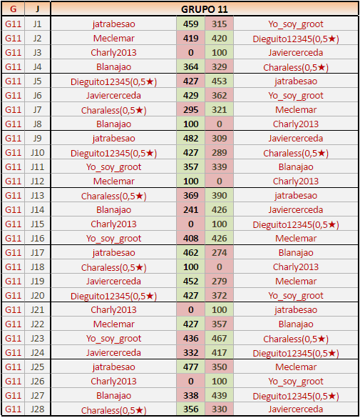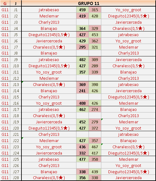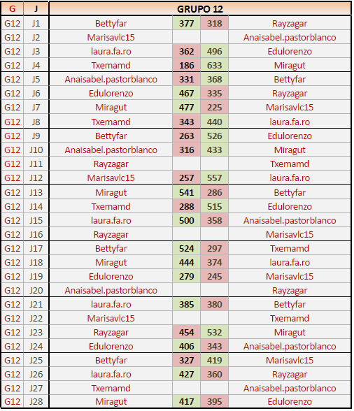 1En está página se irán publicando los resultados de las diferentes partidas, siendo ambos jugadores responsables de subirlos o de comprobar que ya hayan sido publicados insertando un COMENTARIO en la parte inferior de la pantalla (opción “Deja tu comentario”), indicando el nombre de los dos jugadores y los puntos obtenidos en la partida.