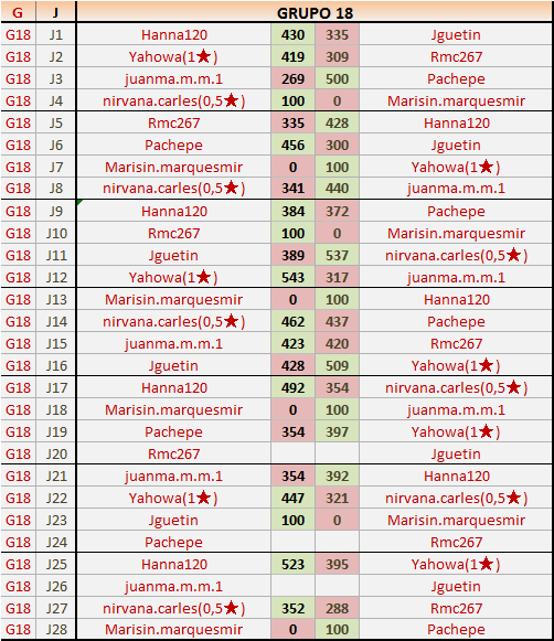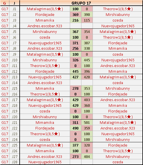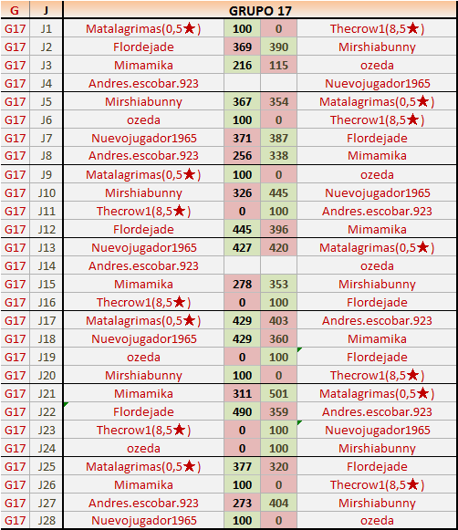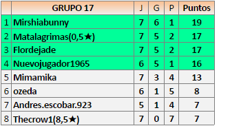2En está página se irán publicando los resultados de las diferentes partidas, siendo ambos jugadores responsables de subirlos o de comprobar que ya hayan sido publicados insertando un COMENTARIO en la parte inferior de la pantalla (opción “Deja tu comentario”), indicando el nombre de los dos jugadores y los puntos obtenidos en la partida.