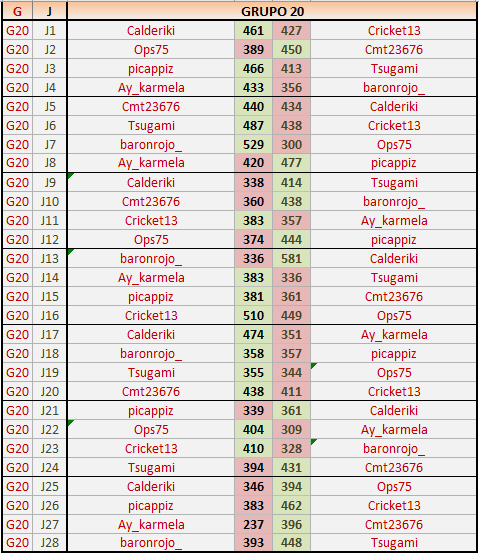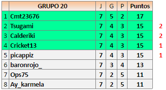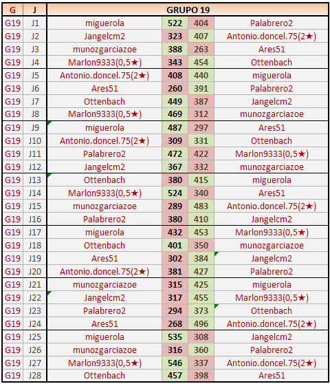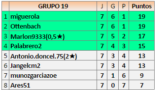 Deja un comentarioEn está página se irán publicando los resultados de las diferentes partidas, siendo ambos jugadores responsables de subirlos o de comprobar que ya hayan sido publicados insertando un COMENTARIO en la parte inferior de la pantalla (opción “Deja tu comentario”), indicando el nombre de los dos jugadores y los puntos obtenidos en la partida.