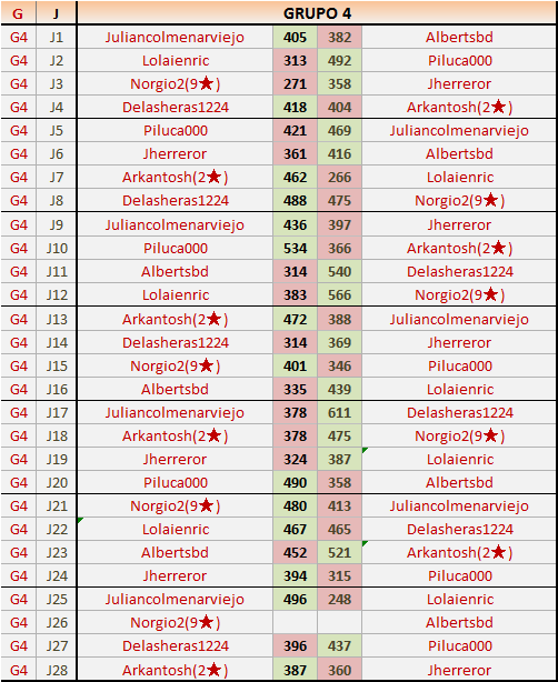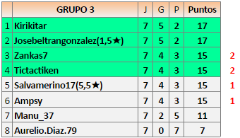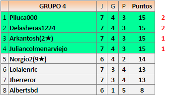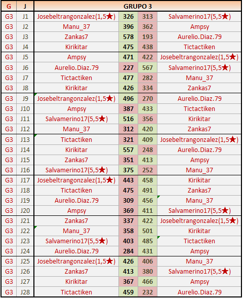 Deja un comentarioEn está página se irán publicando los resultados de las diferentes partidas, siendo ambos jugadores responsables de subirlos o de comprobar que ya hayan sido publicados insertando un COMENTARIO en la parte inferior de la pantalla (opción “Deja tu comentario”), indicando el nombre de los dos jugadores y los puntos obtenidos en la partida.