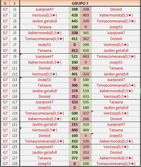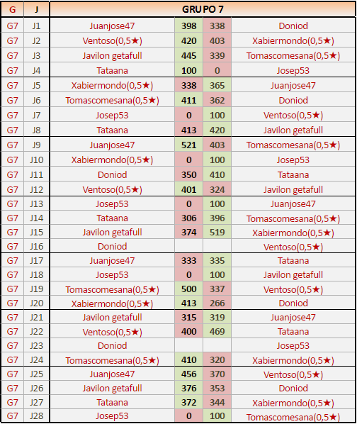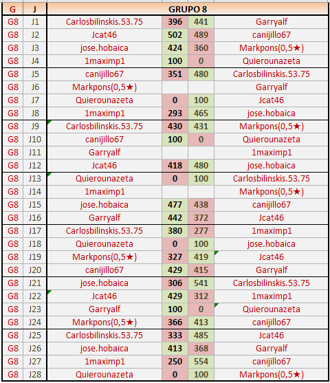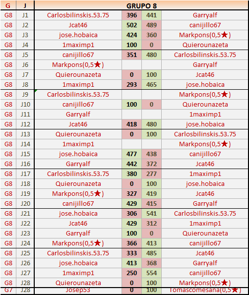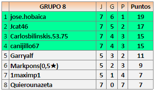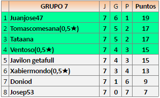 Deja un comentarioEn está página se irán publicando los resultados de las diferentes partidas, siendo ambos jugadores responsables de subirlos o de comprobar que ya hayan sido publicados insertando un COMENTARIO en la parte inferior de la pantalla (opción “Deja tu comentario”), indicando el nombre de los dos jugadores y los puntos obtenidos en la partida.