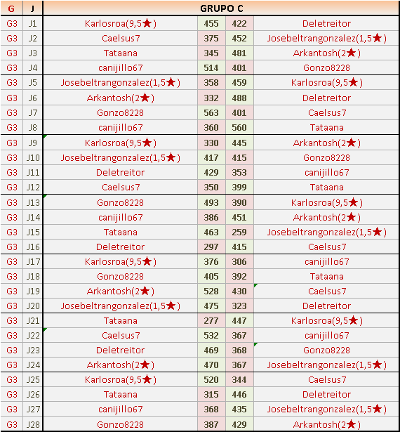 Deja un comentarioES OBLIGATORIO RESPETAR EL ORDEN LOCAL (IZQ) Y VISITANTE (DER), ASÍ COMO INDICAR EL GRUPO CORRESPONDIENTE Y LOS NÚMEROS DE JORNADA.