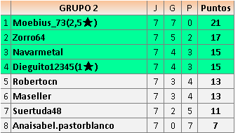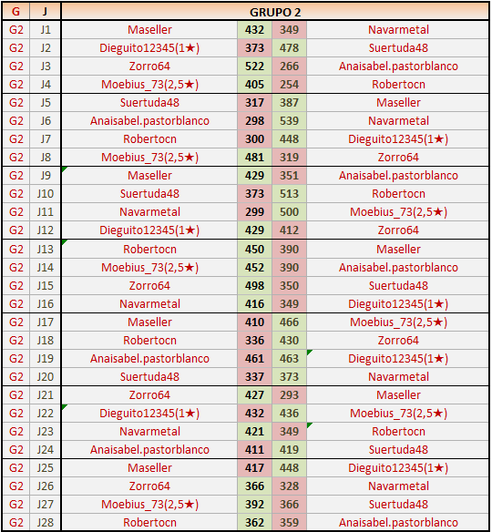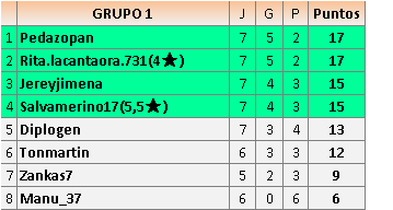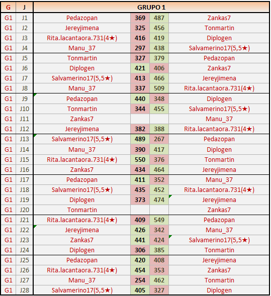 Deja un comentarioEn está página se irán publicando los resultados de las diferentes partidas, siendo ambos jugadores responsables de subirlos o de comprobar que ya hayan sido publicados insertando un COMENTARIO en la parte inferior de la pantalla (opción “Deja tu comentario”), indicando el nombre de los dos jugadores y los puntos obtenidos en la partida.