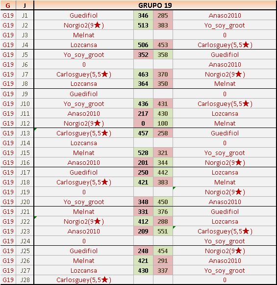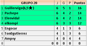 Deja un comentarioEn está página se irán publicando los resultados de las diferentes partidas, siendo ambos jugadores responsables de subirlos o de comprobar que ya hayan sido publicados insertando un COMENTARIO en la parte inferior de la pantalla (opción “Deja tu comentario”), indicando el nombre de los dos jugadores y los puntos obtenidos en la partida.