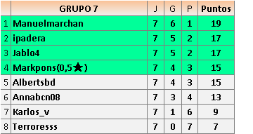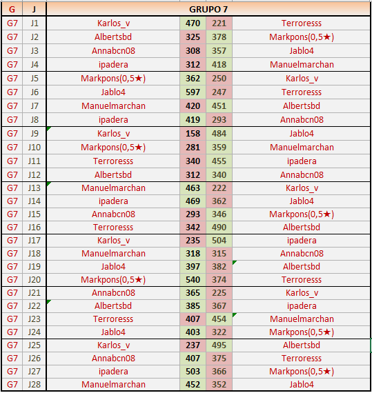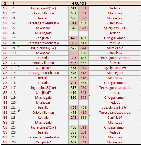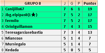 Deja un comentarioEn está página se irán publicando los resultados de las diferentes partidas, siendo ambos jugadores responsables de subirlos o de comprobar que ya hayan sido publicados insertando un COMENTARIO en la parte inferior de la pantalla (opción “Deja tu comentario”), indicando el nombre de los dos jugadores y los puntos obtenidos en la partida.