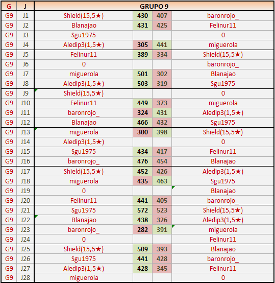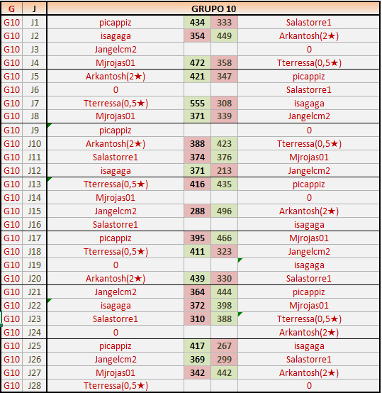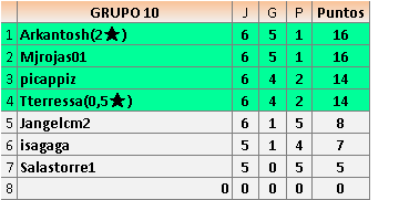 Deja un comentarioEn está página se irán publicando los resultados de las diferentes partidas, siendo ambos jugadores responsables de subirlos o de comprobar que ya hayan sido publicados insertando un COMENTARIO en la parte inferior de la pantalla (opción “Deja tu comentario”), indicando el nombre de los dos jugadores y los puntos obtenidos en la partida.