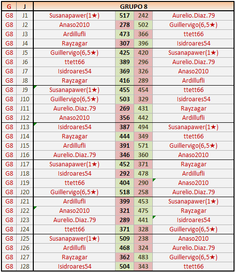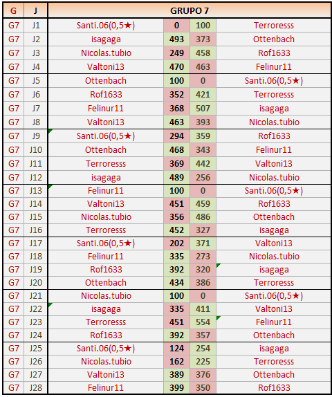 Deja un comentarioEn está página se irán publicando los resultados de las diferentes partidas, siendo ambos jugadores responsables de subirlos o de comprobar que ya hayan sido publicados insertando un COMENTARIO en la parte inferior de la pantalla (opción “Deja tu comentario”), indicando el nombre de los dos jugadores y los puntos obtenidos en la partida.