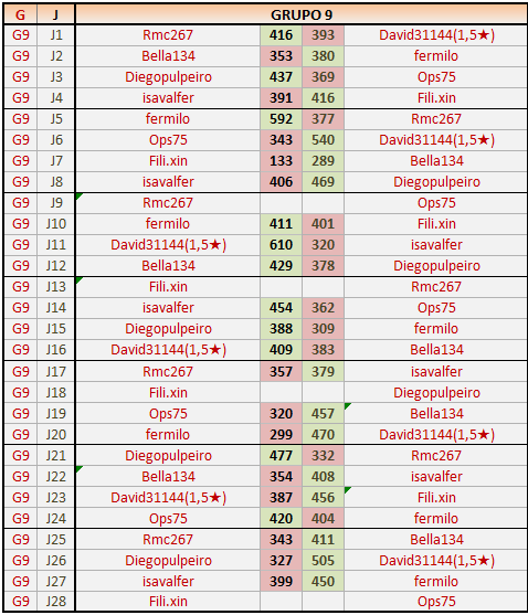 1En está página se irán publicando los resultados de las diferentes partidas, siendo ambos jugadores responsables de subirlos o de comprobar que ya hayan sido publicados insertando un COMENTARIO en la parte inferior de la pantalla (opción “Deja tu comentario”), indicando el nombre de los dos jugadores y los puntos obtenidos en la partida.