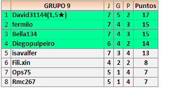 1En está página se irán publicando los resultados de las diferentes partidas, siendo ambos jugadores responsables de subirlos o de comprobar que ya hayan sido publicados insertando un COMENTARIO en la parte inferior de la pantalla (opción “Deja tu comentario”), indicando el nombre de los dos jugadores y los puntos obtenidos en la partida.