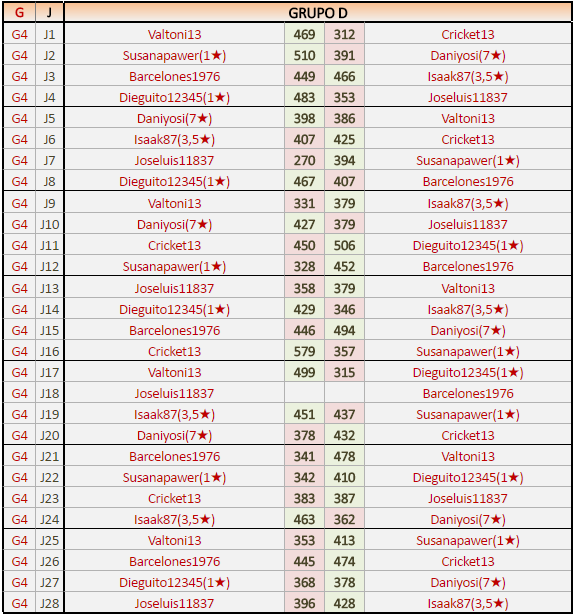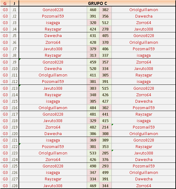 Deja un comentarioES OBLIGATORIO RESPETAR EL ORDEN LOCAL (IZQ) Y VISITANTE (DER), ASÍ COMO INDICAR EL GRUPO CORRESPONDIENTE Y LOS NÚMEROS DE JORNADA.