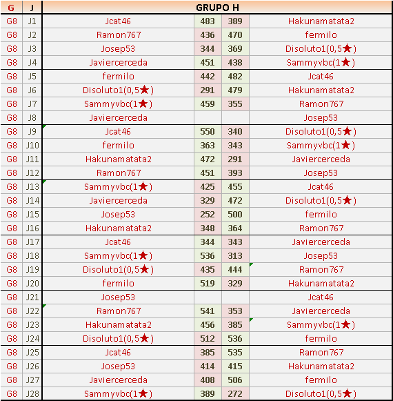 Deja un comentarioES OBLIGATORIO RESPETAR EL ORDEN LOCAL (IZQ) Y VISITANTE (DER), ASÍ COMO INDICAR EL GRUPO CORRESPONDIENTE Y LOS NÚMEROS DE JORNADA.