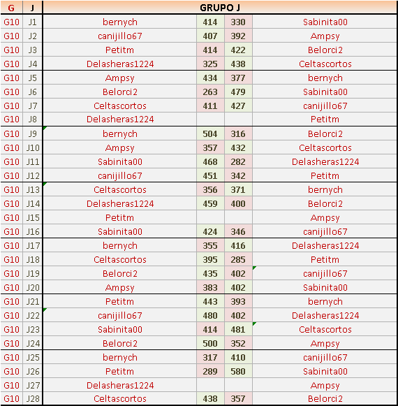 Deja un comentarioES OBLIGATORIO RESPETAR EL ORDEN LOCAL (IZQ) Y VISITANTE (DER), ASÍ COMO INDICAR EL GRUPO CORRESPONDIENTE Y LOS NÚMEROS DE JORNADA.