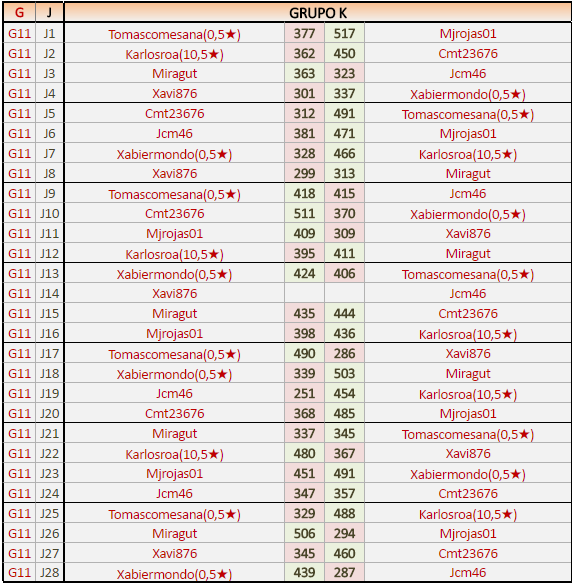 Deja un comentarioES OBLIGATORIO RESPETAR EL ORDEN LOCAL (IZQ) Y VISITANTE (DER), ASÍ COMO INDICAR EL GRUPO CORRESPONDIENTE Y LOS NÚMEROS DE JORNADA.