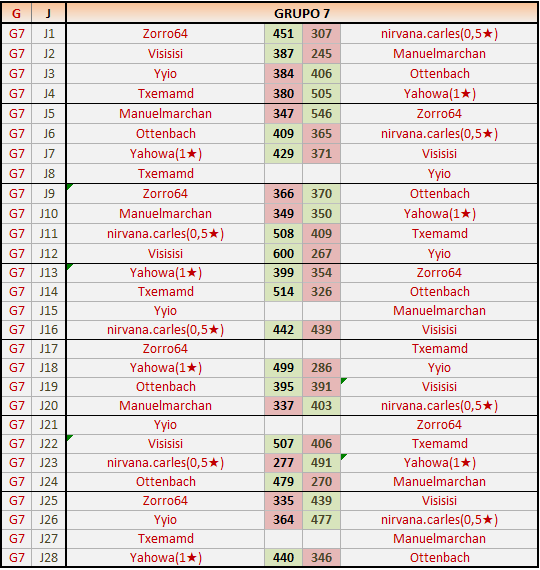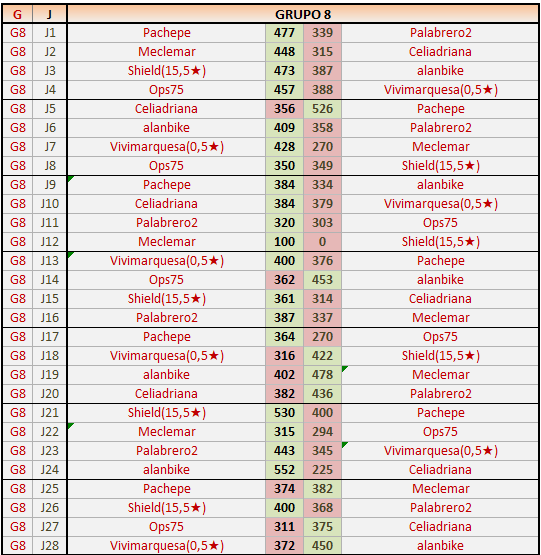 Deja un comentarioEn está página se irán publicando los resultados de las diferentes partidas, siendo ambos jugadores responsables de subirlos o de comprobar que ya hayan sido publicados insertando un COMENTARIO en la parte inferior de la pantalla (opción “Deja tu comentario”), indicando el nombre de los dos jugadores y los puntos obtenidos en la partida.