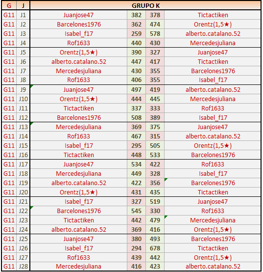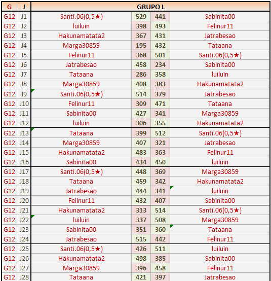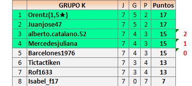 Deja un comentarioEn está página se irán publicando los resultados de las diferentes partidas, siendo ambos jugadores responsables de subirlos o de comprobar que ya hayan sido publicados insertando un COMENTARIO en la parte inferior de la pantalla (opción “Deja tu comentario”), indicando el nombre de los dos jugadores y los puntos obtenidos en la partida.