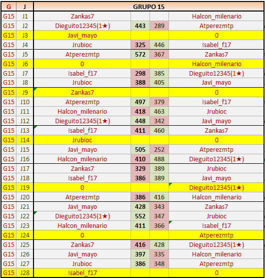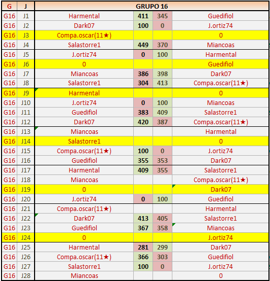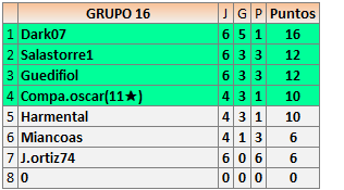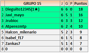 Deja un comentarioEn está página se irán publicando los resultados de las diferentes partidas, siendo ambos jugadores responsables de subirlos o de comprobar que ya hayan sido publicados insertando un COMENTARIO en la parte inferior de la pantalla (opción “Deja tu comentario”), indicando el nombre de los dos jugadores y los puntos obtenidos en la partida.