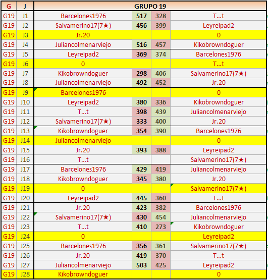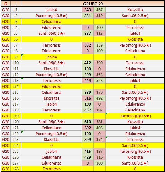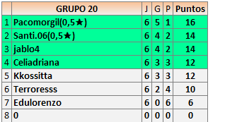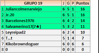 Deja un comentarioEn está página se irán publicando los resultados de las diferentes partidas, siendo ambos jugadores responsables de subirlos o de comprobar que ya hayan sido publicados insertando un COMENTARIO en la parte inferior de la pantalla (opción “Deja tu comentario”), indicando el nombre de los dos jugadores y los puntos obtenidos en la partida.