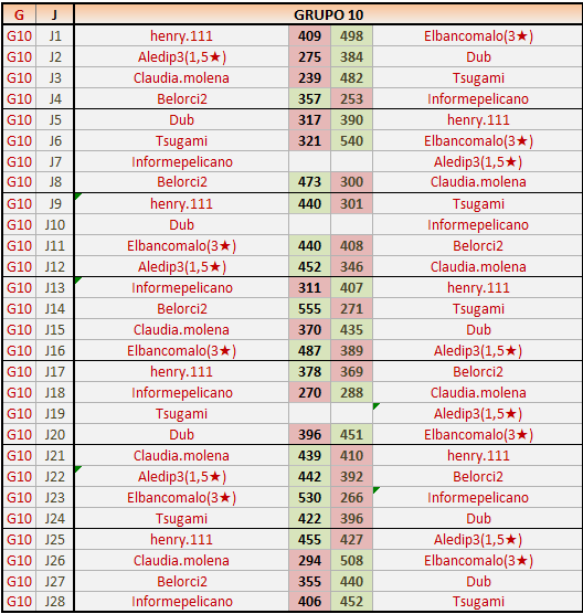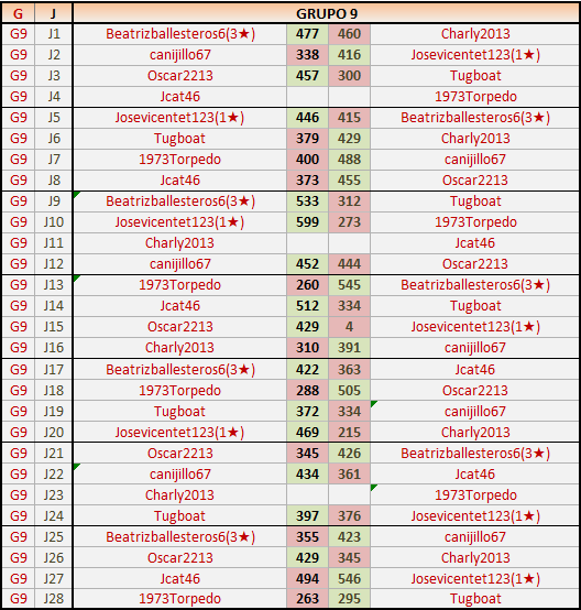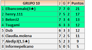 Deja un comentarioEn está página se irán publicando los resultados de las diferentes partidas, siendo ambos jugadores responsables de subirlos o de comprobar que ya hayan sido publicados insertando un COMENTARIO en la parte inferior de la pantalla (opción “Deja tu comentario”), indicando el nombre de los dos jugadores y los puntos obtenidos en la partida.