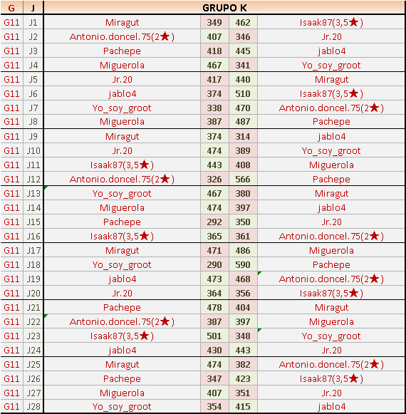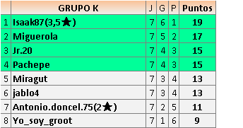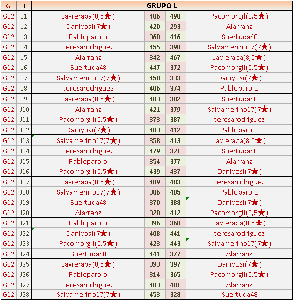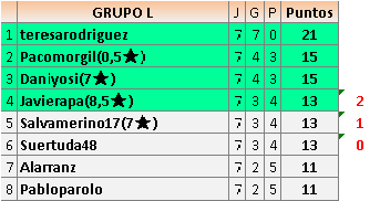 Deja un comentarioEn está página se irán publicando los resultados de las diferentes partidas, siendo ambos jugadores responsables de subirlos o de comprobar que ya hayan sido publicados insertando un COMENTARIO en la parte inferior de la pantalla (opción “Deja tu comentario”), indicando el nombre de los dos jugadores y los puntos obtenidos en la partida.