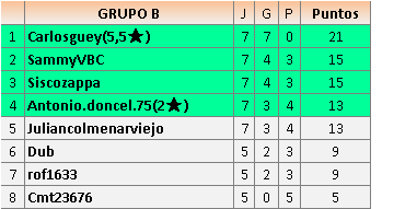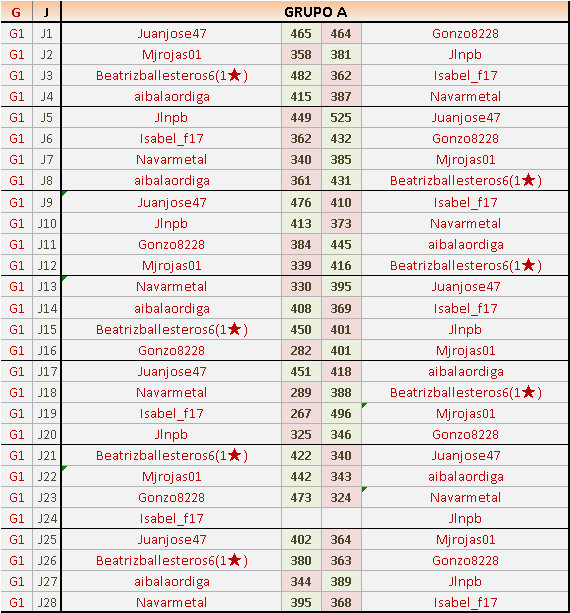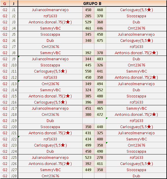 En está página se irán publicando los resultados de las diferentes partidas, siendo ambos jugadores responsables de subirlos o de comprobar que ya hayan sido publicados insertando un COMENTARIO en la parte inferior de la pantalla (opción “Deja tu comentario”), indicando el nombre de los dos jugadores y los puntos obtenidos en la partida.