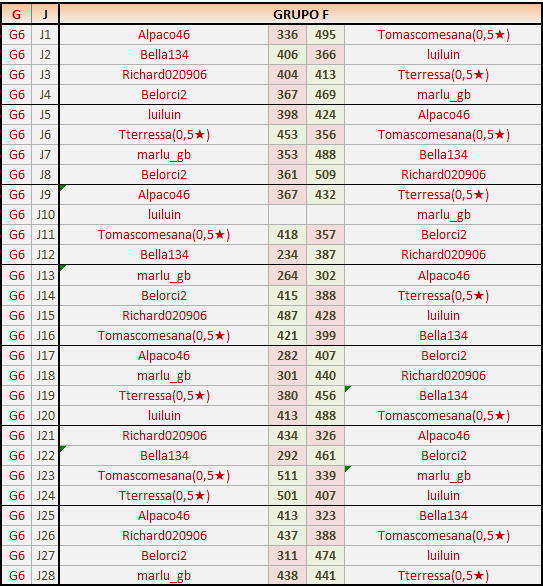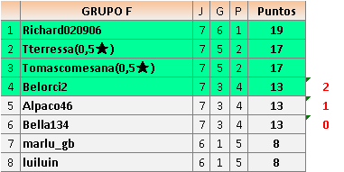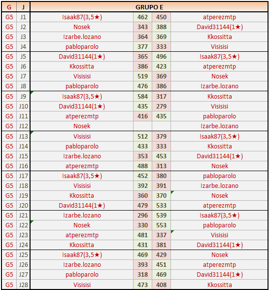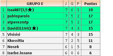 Deja un comentarioEn está página se irán publicando los resultados de las diferentes partidas, siendo ambos jugadores responsables de subirlos o de comprobar que ya hayan sido publicados insertando un COMENTARIO en la parte inferior de la pantalla (opción “Deja tu comentario”), indicando el nombre de los dos jugadores y los puntos obtenidos en la partida.