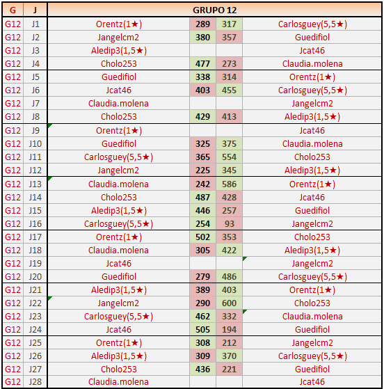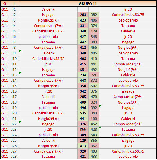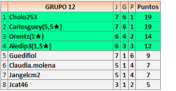 Deja un comentarioEn está página se irán publicando los resultados de las diferentes partidas, siendo ambos jugadores responsables de subirlos o de comprobar que ya hayan sido publicados insertando un COMENTARIO en la parte inferior de la pantalla (opción “Deja tu comentario”), indicando el nombre de los dos jugadores y los puntos obtenidos en la partida.