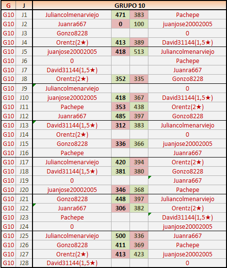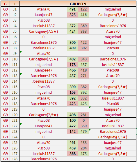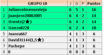 Deja un comentarioEn está página se irán publicando los resultados de las diferentes partidas, siendo ambos jugadores responsables de subirlos o de comprobar que ya hayan sido publicados insertando un COMENTARIO en la parte inferior de la pantalla (opción “Deja tu comentario”), indicando el nombre de los dos jugadores y los puntos obtenidos en la partida.
