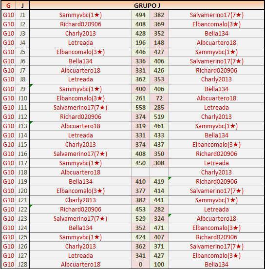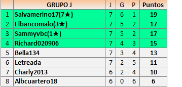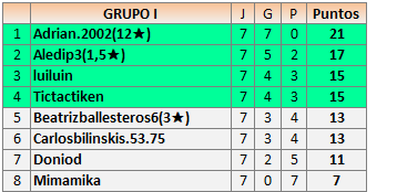 Deja un comentarioEn está página se irán publicando los resultados de las diferentes partidas, siendo ambos jugadores responsables de subirlos o de comprobar que ya hayan sido publicados insertando un COMENTARIO en la parte inferior de la pantalla (opción “Deja tu comentario”), indicando el nombre de los dos jugadores y los puntos obtenidos en la partida.