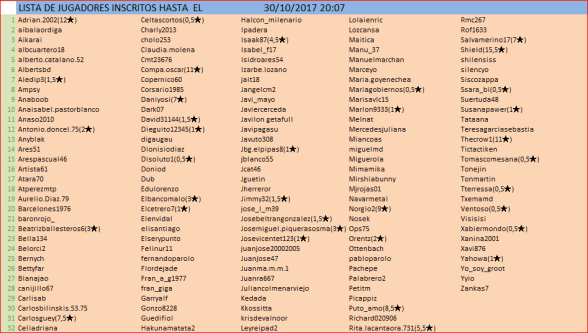 HASTA EL 15 DE ENERO O UN TOPE DE 80 JUGADORES