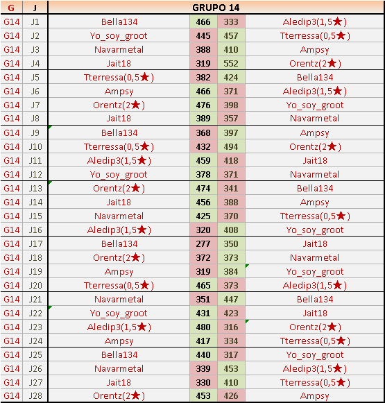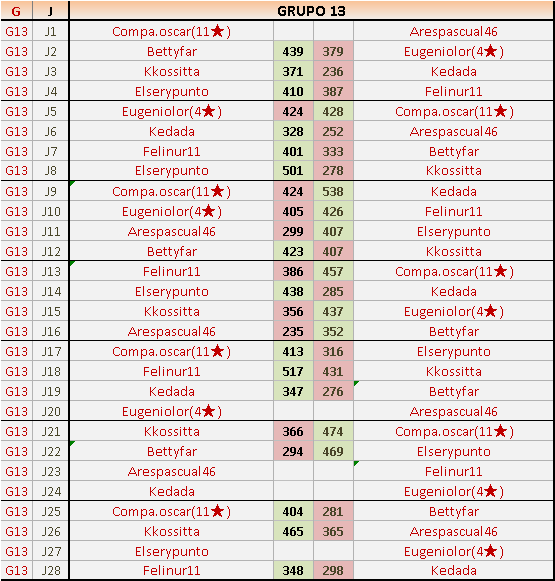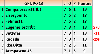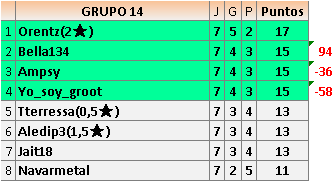 Deja un comentarioEn está página se irán publicando los resultados de las diferentes partidas, siendo ambos jugadores responsables de subirlos o de comprobar que ya hayan sido publicados insertando un COMENTARIO en la parte inferior de la pantalla (opción “Deja tu comentario”), indicando el nombre de los dos jugadores y los puntos obtenidos en la partida.