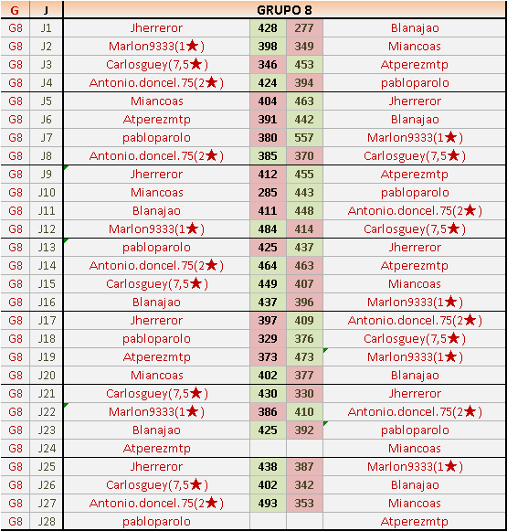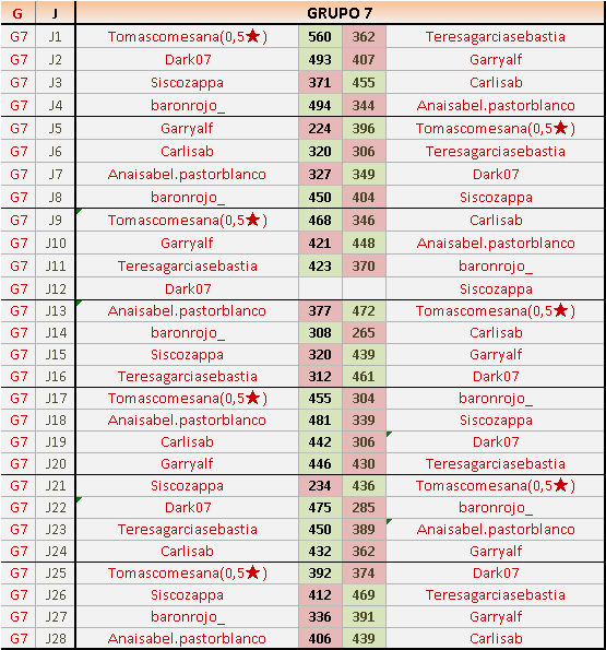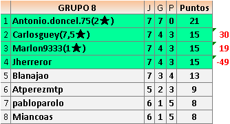 Deja un comentarioEn está página se irán publicando los resultados de las diferentes partidas, siendo ambos jugadores responsables de subirlos o de comprobar que ya hayan sido publicados insertando un COMENTARIO en la parte inferior de la pantalla (opción “Deja tu comentario”), indicando el nombre de los dos jugadores y los puntos obtenidos en la partida.