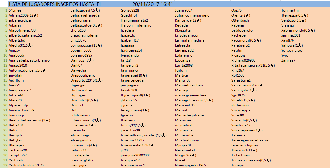Deja un comentarioInicio del torneo: 21 Noviembre
