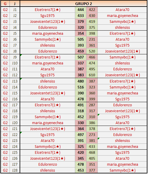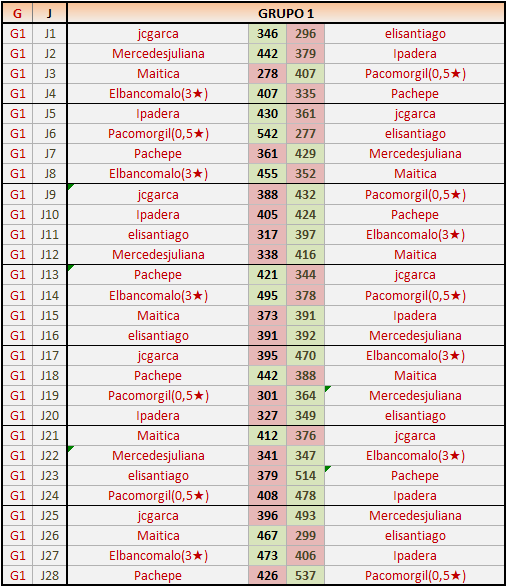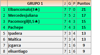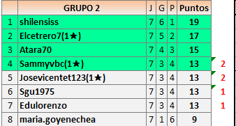 Deja un comentarioEn está página se irán publicando los resultados de las diferentes partidas, siendo ambos jugadores responsables de subirlos o de comprobar que ya hayan sido publicados insertando un COMENTARIO en la parte inferior de la pantalla (opción “Deja tu comentario”), indicando el nombre de los dos jugadores y los puntos obtenidos en la partida.