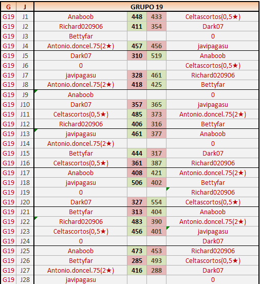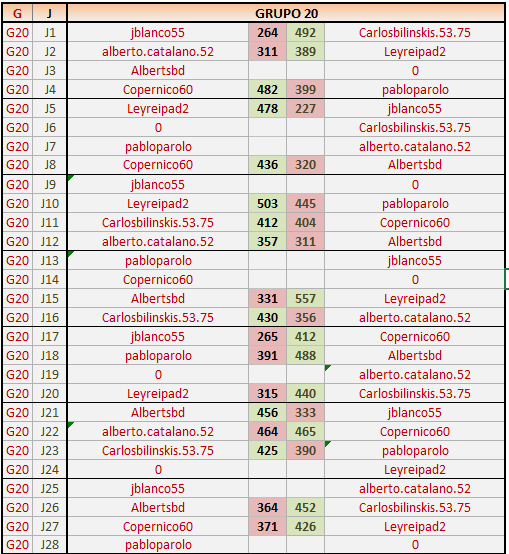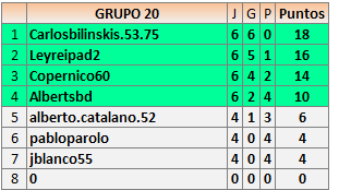 Deja un comentarioEn está página se irán publicando los resultados de las diferentes partidas, siendo ambos jugadores responsables de subirlos o de comprobar que ya hayan sido publicados insertando un COMENTARIO en la parte inferior de la pantalla (opción “Deja tu comentario”), indicando el nombre de los dos jugadores y los puntos obtenidos en la partida.