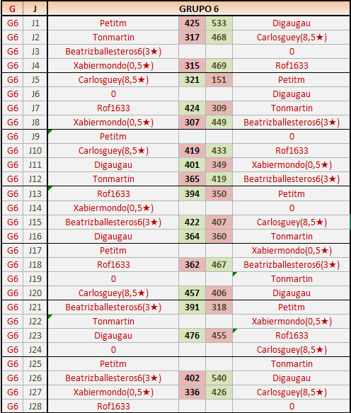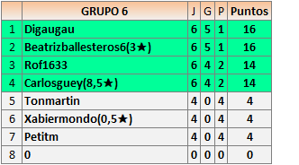 1En está página se irán publicando los resultados de las diferentes partidas, siendo ambos jugadores responsables de subirlos o de comprobar que ya hayan sido publicados insertando un COMENTARIO en la parte inferior de la pantalla (opción “Deja tu comentario”), indicando el nombre de los dos jugadores y los puntos obtenidos en la partida.
